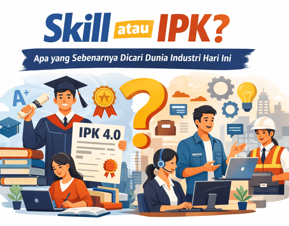 February 23, 2026 February 23, 2026Categories BlogSkill atau IPK? Apa yang Sebenarnya Dicari Dunia Industri Hari IniSelama bertahun-tahun, Indeks Prestasi Kumulatif (IPK) kerap dianggap sebagai “tiket emas” menuju dunia kerja. Semakin tinggi nilainya, semakin besar pula harapan untuk diterima di perusahaan impian. […]