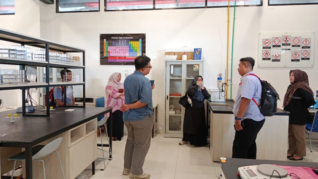 Selain sesi diskusi, delegasi UMRAH juga diajak meninjau secara langsung fasilitas Laboratorium Fisika dan Laboratorium Kimia yang dimiliki ITEBA. Dalam kesempatan tersebut, Wakil Rektor I ITEBA, Bapak Dr. Eng. Ansarullah Lawi, M.Eng., didampingi Kepala Laboratorium Kimia ITEBA, Ibu Sari Rahmiati, S.Pd., M.Pd., memaparkan teknis penggunaan laboratorium, sistem pengelolaan, hingga standar bahan dan modul praktikum yang diterapkan dalam kegiatan pembelajaran mahasiswa.