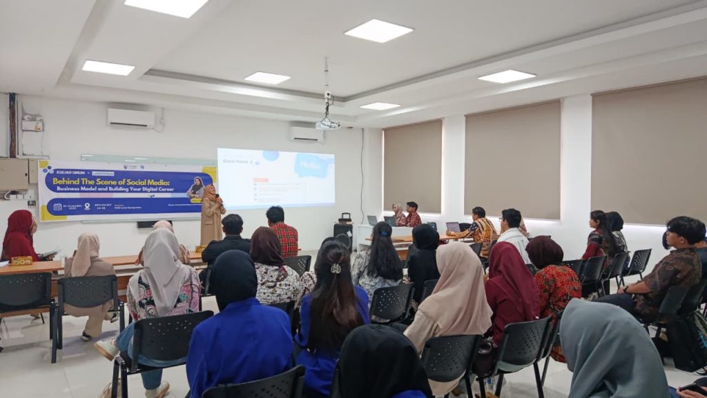 Kuliah umum ini menghadirkan narasumber profesional dari industri digital, Ibu Deviana, S.Kom., M.M, selaku Director Corporate Branding Luna Park Media Pte Ltd. Dalam penyampaiannya, beliau memaparkan konsep business model modern yang berbasis data, inovasi, serta kebutuhan pasar. Selain itu, beliau membahas berbagai peluang karier digital yang kini terbuka lebar, mulai dari digital marketing, data analytics, pengembangan konten, hingga manajemen produk digital, khususnya pada Luna Park Media.