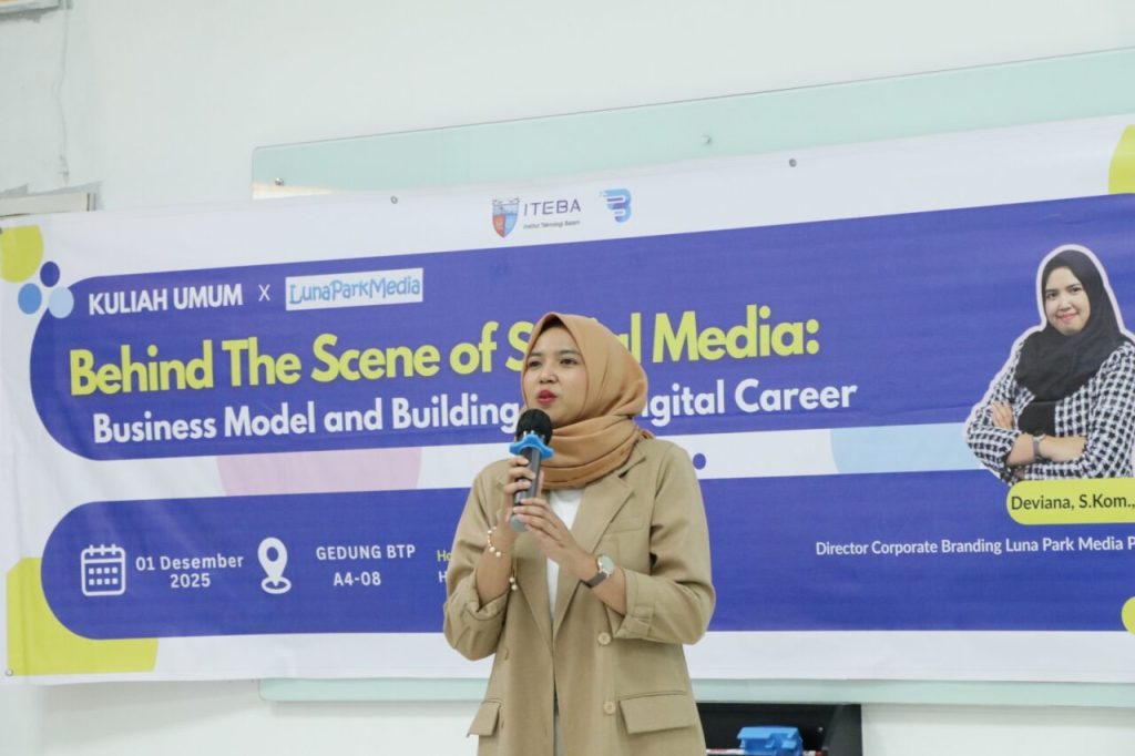 BATAM, 01 Desember 2025 – Sebagai upaya memperkuat kompetensi Mahasiswa dalam memahami perkembangan industri digital, Institut Teknologi Batam (ITEBA) menyelenggarakan kuliah umum bertema “Business Model and Building Your Digital Career”. Kegiatan ini dirancang untuk memberikan wawasan praktis mengenai model bisnis modern serta mempersiapkan Mahasiswa menghadapi tantangan dan peluang karier di era digital. Melalui kegiatan ini, ITEBA berharap dapat menjembatani Mahasiswa dengan kebutuhan dunia industri sekaligus meningkatkan pemahaman mereka terhadap dinamika ekonomi digital yang terus berkembang.