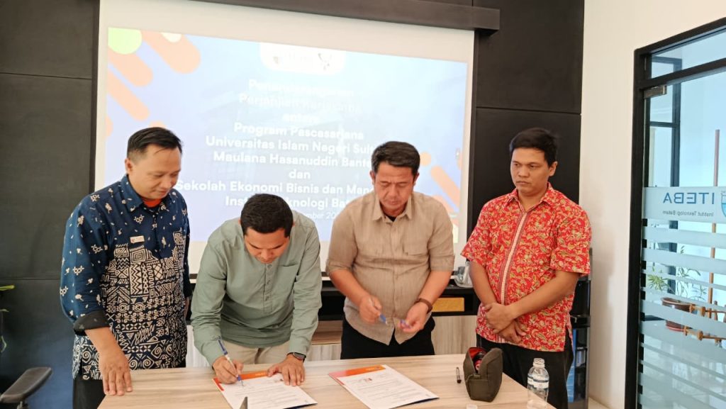 Sebagai tindak lanjut konkret, pertemuan ini langsung ditutup dengan penandatanganan perjanjian kerja sama antara Program Pascasarjana UIN SMH Banten, dengan Sekolah Ekonomi, Bisnis, dan Manajemen (SEBM) ITEBA. Penandatanganan dilakukan oleh Dekan SEBM ITEBA, Bapak Assoc. Prof. Dr. Ir. M. Ansyar Bora, S.T, M.T, IPM, didampingi Wakil Rektor I ITEBA Bapak Dr. Eng. Ansarullah Lawi, M.Eng., serta Kepala Bagian Kerja Sama ITEBA, Bapak Zainul Munir, S.T., Me.TC.