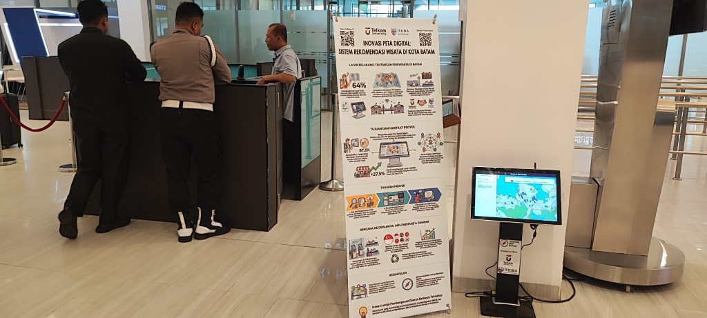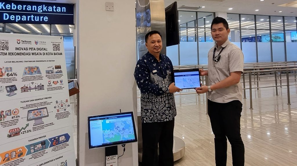 Institut Teknologi Batam (ITEBA) bersama Telkom University merealisasikan implementasi awal inovasi Tourism Map Batam melalui kegiatan serah terima TV monitor layar sentuh dan aplikasi peta digital pariwisata yang berlangsung pada Senin, 15 Desember 2025, di Pelabuhan Ferry Harbour Bay. Kegiatan ini menjadi tonggak penting kolaborasi riset kedua perguruan tinggi dalam menghadirkan layanan informasi pariwisata yang modern, terintegrasi, dan mudah diakses oleh wisatawan.
