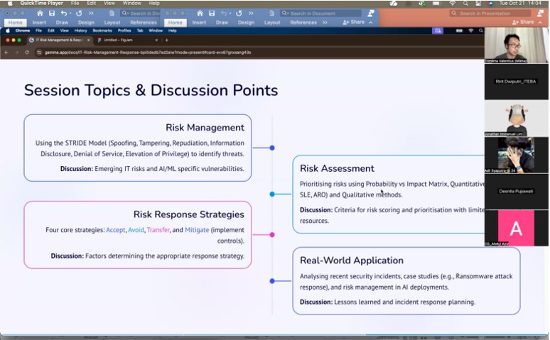 Di sisi lain, mata kuliah Manajemen Resiko membekali mahasiswa dengan kemampuan yang tak ternilai dalam menjaga integritas sistem informasi. Mahasiswa akan mampu mengidentifikasi, menganalisis, dan memitigasi risiko IT, serta memahami konsep penting seperti Business Continuity Plan dan Disaster Recovery Center. Pengetahuan ini memastikan lulusan ITEBA tidak hanya unggul dalam menciptakan teknologi, tetapi juga dalam mengamankan aset organisasi dan membuat keputusan manajerial yang terinformasi dan bertanggung jawab, menjadikan mereka tenaga profesional yang lengkap dan siap menghadapi tantangan di era digital.