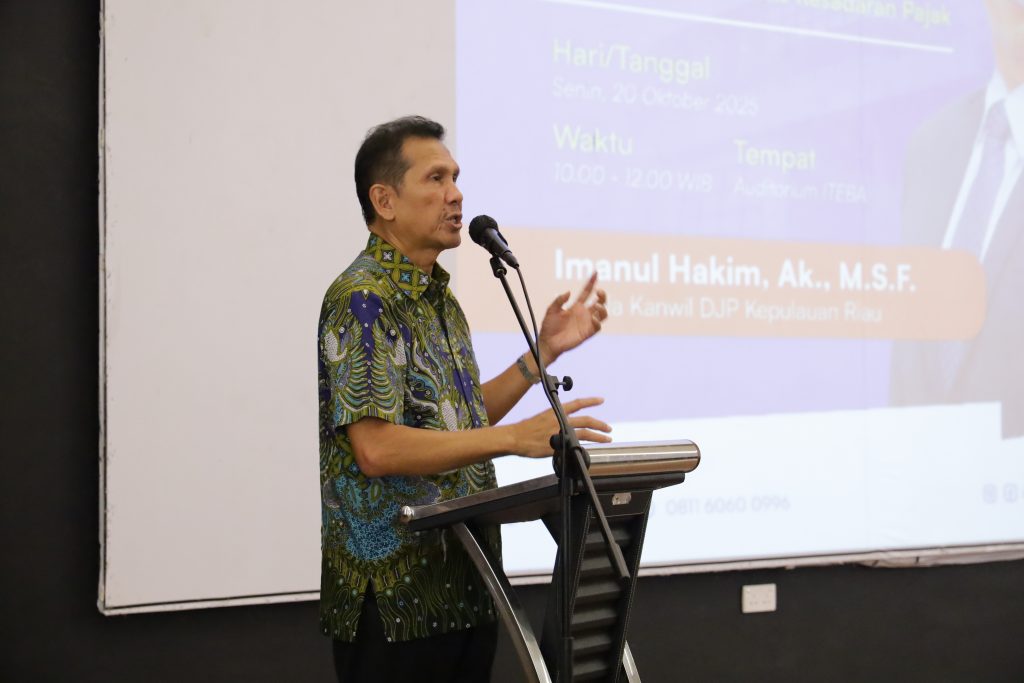 Batam, 20 Oktober 2025 – Dalam upaya meningkatkan literasi dan kesadaran pajak di kalangan Mahasiswa, ITEBA bekerja sama dengan Kantor Wilayah Direktorat Jenderal Pajak (DJP) Kepri menggelar Kuliah Umum Kesadaran Pajak bertema “Penguatan Nilai-Nilai Pancasila di Era Digital dalam Konteks Kesadaran Pajak”.