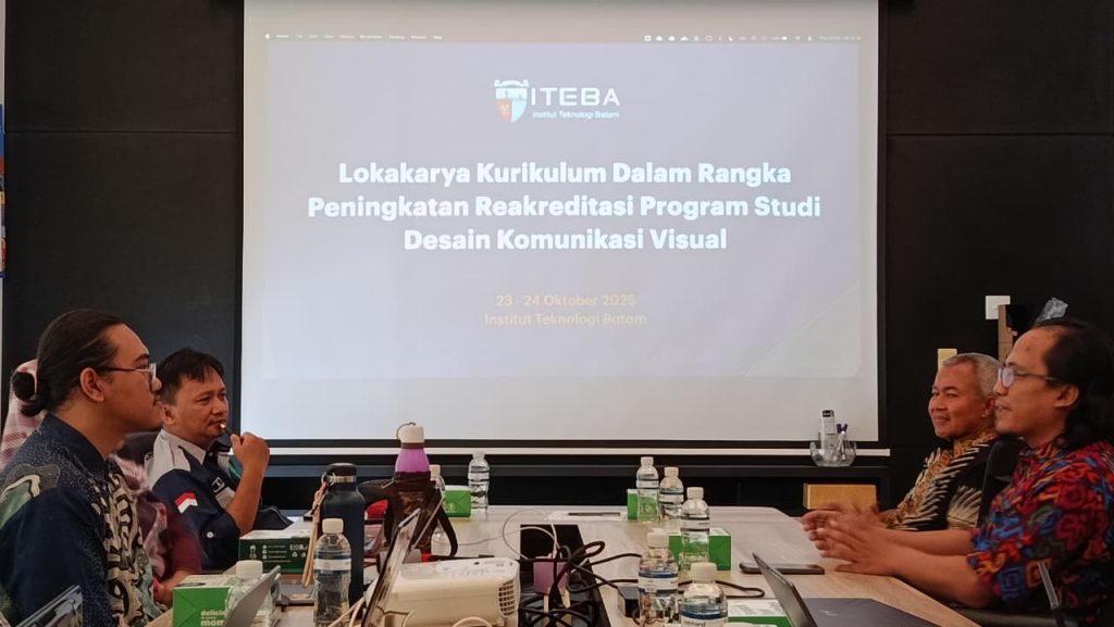 Batam, 25 Oktober 2025 – Dalam upaya memperkuat mutu pendidikan dan memastikan keselarasan kurikulum dengan perkembangan industri kreatif yang terus berkembang pesat, Program Studi Desain Komunikasi Visual (DKV) Institut Teknologi Batam (ITEBA) menggelar kegiatan Pemutakhiran Kurikulum dan Persiapan Re-Akreditasi pada Kamis, 23 Oktober 2025. Bertempat di ruang rapat Rektorat lantai 2, kegiatan ini menghadirkan mentor dari Institut Seni Indonesia (ISI) Bali, Bapak Dr. I Nyoman Larry Julianto, S.Sn .,M.Ds., yang turut memberikan pendampingan, masukan, serta evaluasi strategis terhadap arah pengembangan Prodi DKV ke depan.