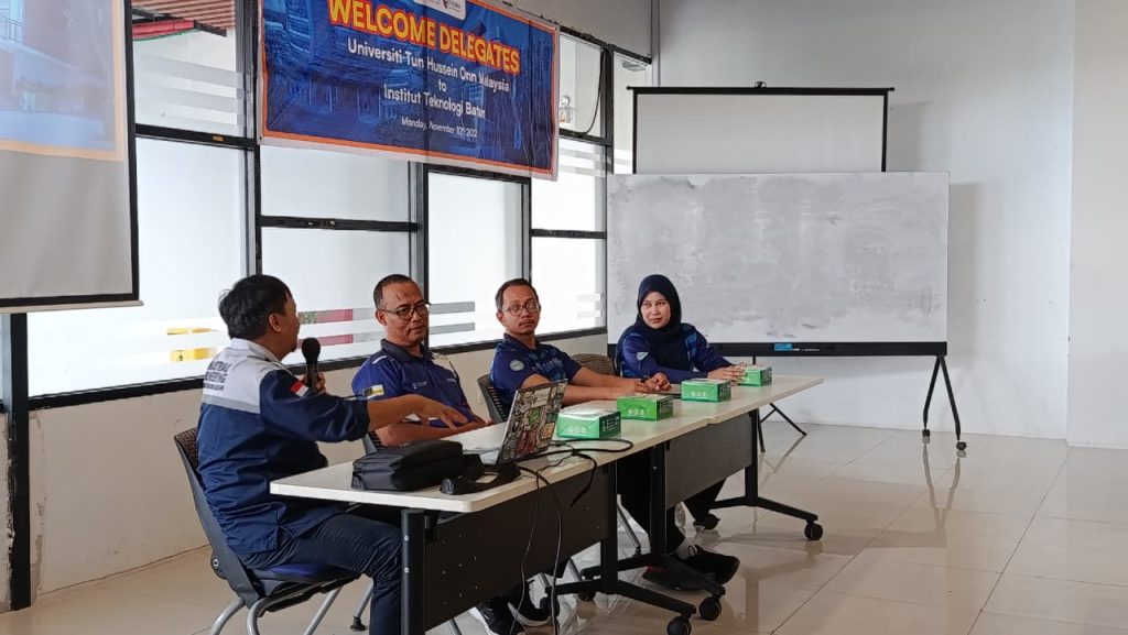 Rombongan UTHM yang berjumlah 26 orang, terdiri atas Pejabat Universitas dan Dosen dari berbagai fakultas, dipimpin oleh Dr. Muhammad Hafizul Amin bin Jimaain, kehadiran delegasi disambut hangat oleh Wakil Rektor I ITEBA, Dr. Eng. Ansarullah Lawi, M.Eng., di ruang pertemuan B3-14 ITEBA.
