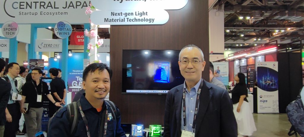 Dalam bidang material elektronik, Pak Lawi berdiskusi dengan Junji Adachi dari Kyulux mengenai riset material OLED Hyperfluorescence, pengembangan display ramah lingkungan, serta tantangan penelitian material organik yang mendukung efisiensi energi.